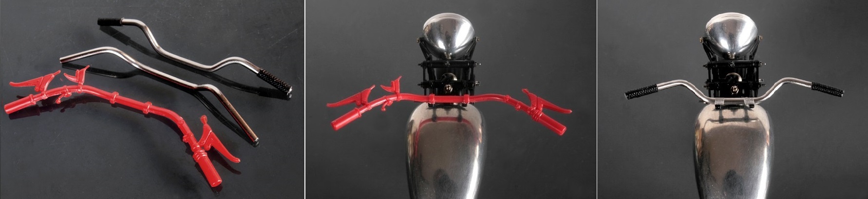 キットのハンドルバーを装着した写真と比べてみると相当違うことが分かる。