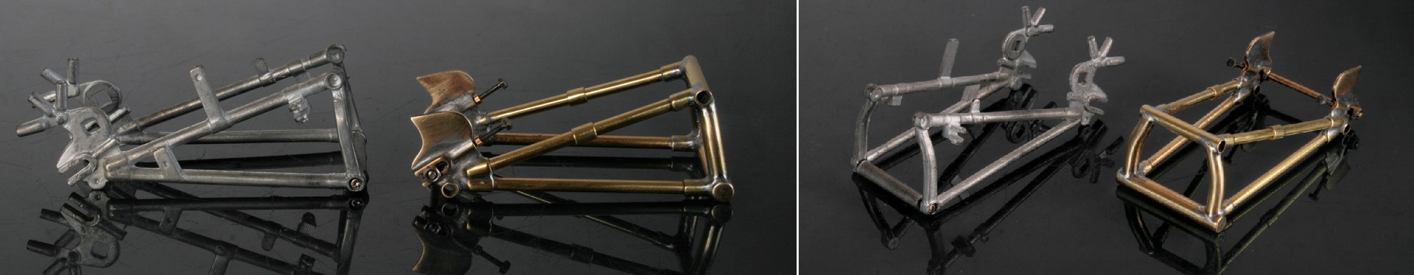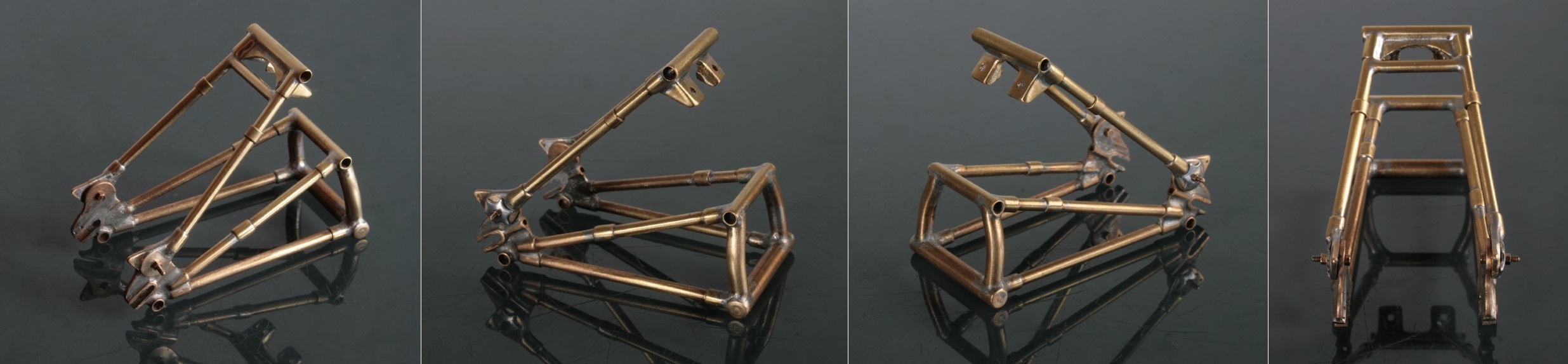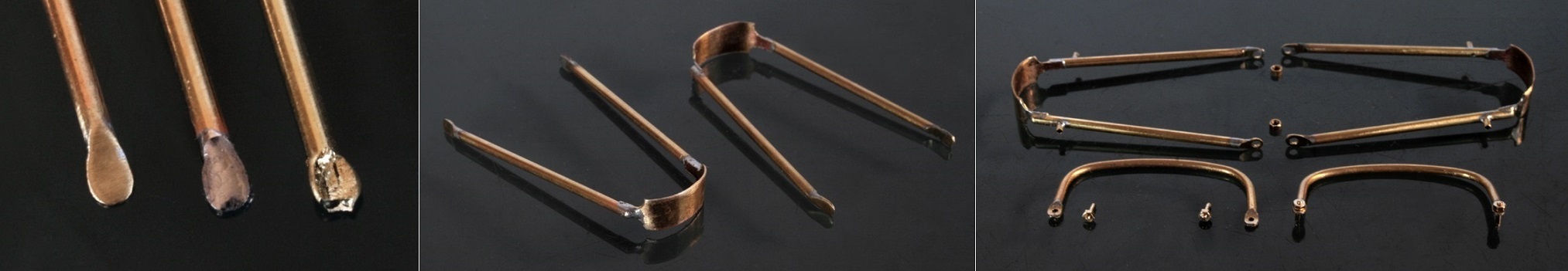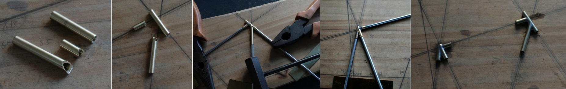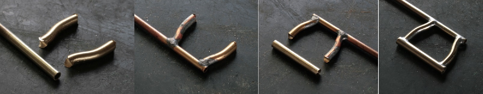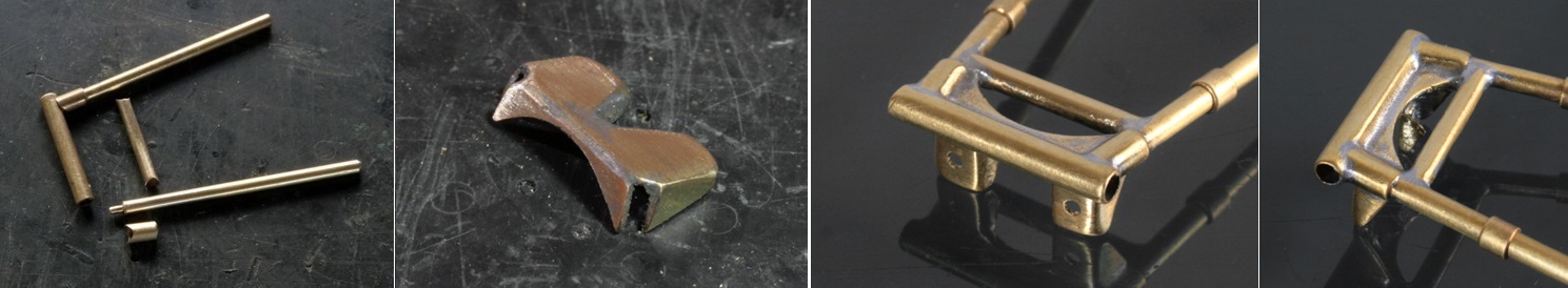メインフレームは接合部分をΦ4mmの真鍮パイプで作り、フレーム自体はΦ3mmの真鍮パイプにする。(真鍮棒にすると半田付けをする時に熱が伝わりにくいので)