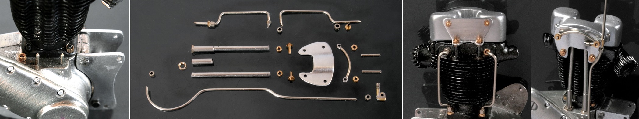 まず、シリンダーをボルト留めできるようにし、さらにプッシュロッドとオイルパイプを自作する。プッシュロッドはΦ1.8mmとなる計算だが、丁度よい素材が無かったため、以前に作ったVincentのフェンダーステーの余りを利用した。