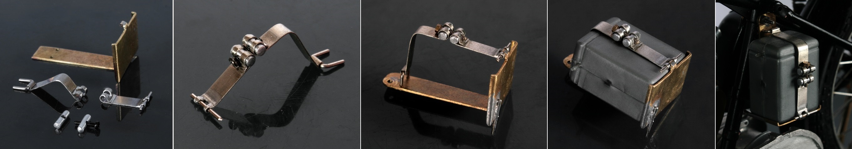 バッテリーボックスの本体は0.2mm厚の真鍮板を折り曲げて作成。留め金は洋白板。