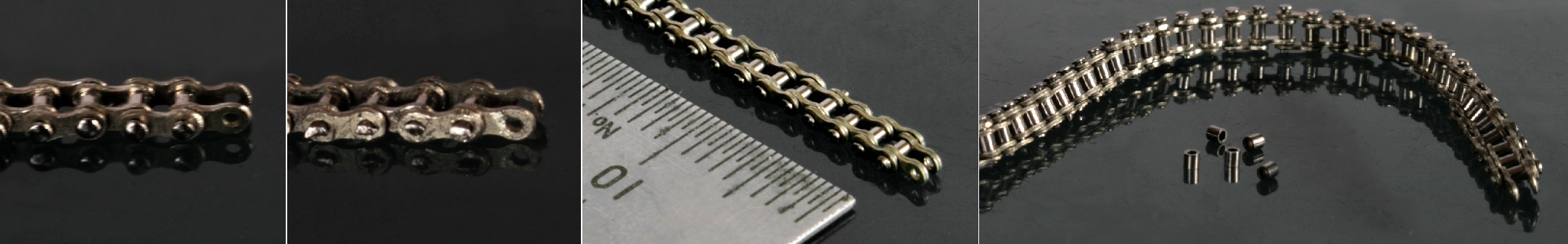 今回、既製品のローラーなので、チェーンが全くよれずに真っ直ぐに組み上がった。当たり前だがローラーも美しい。