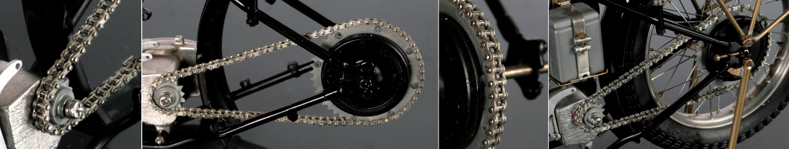 ギアボックスの取り付けは、実車同様、チェーンの緩みを調整できるよう可動式とする。