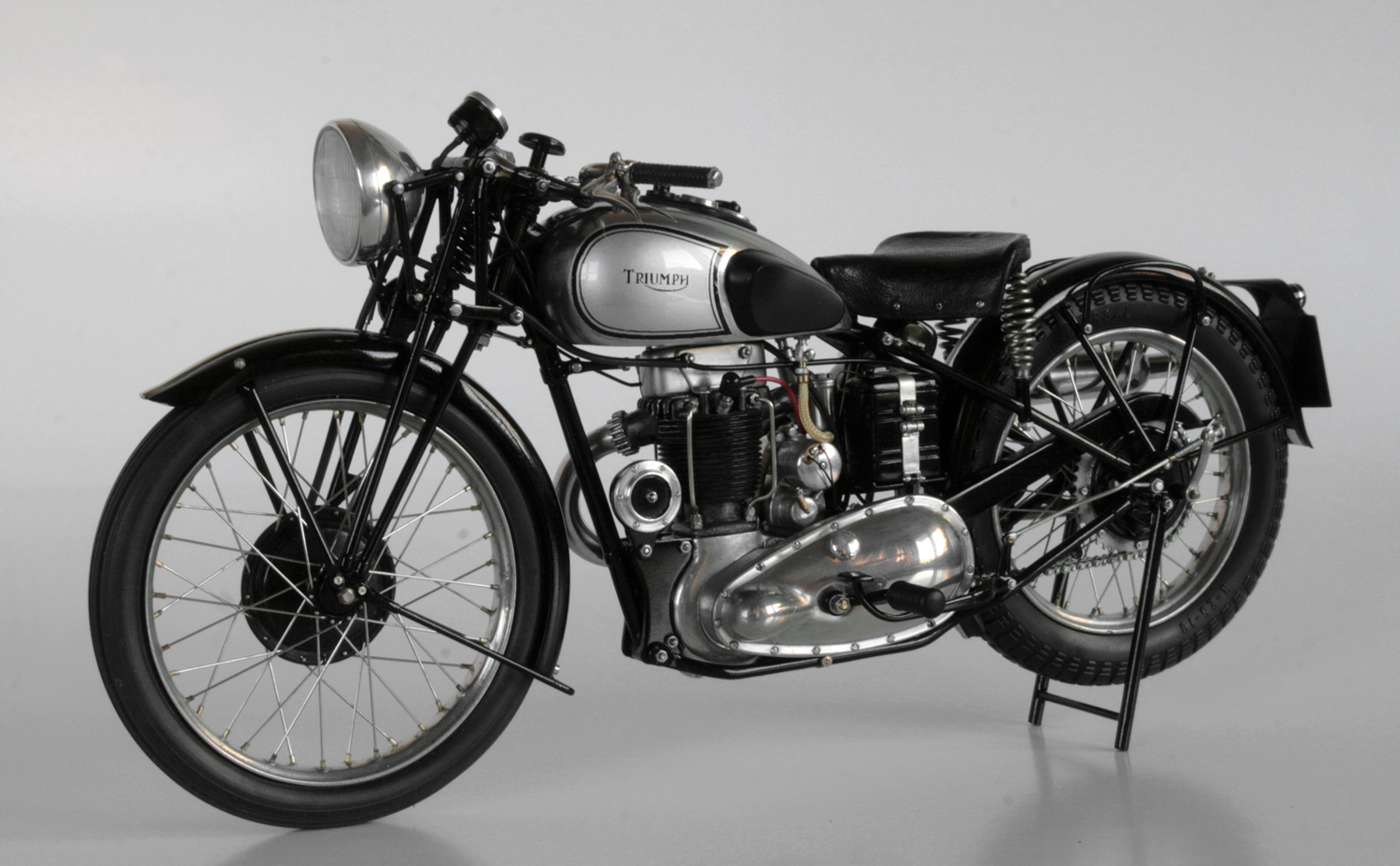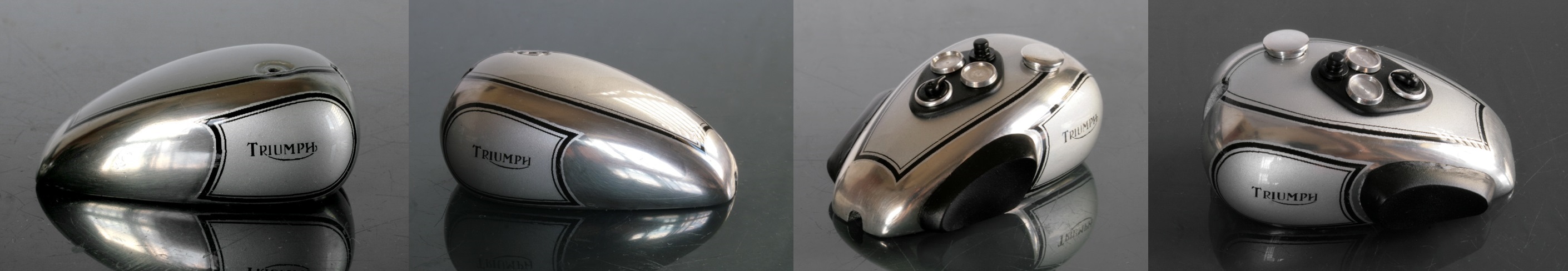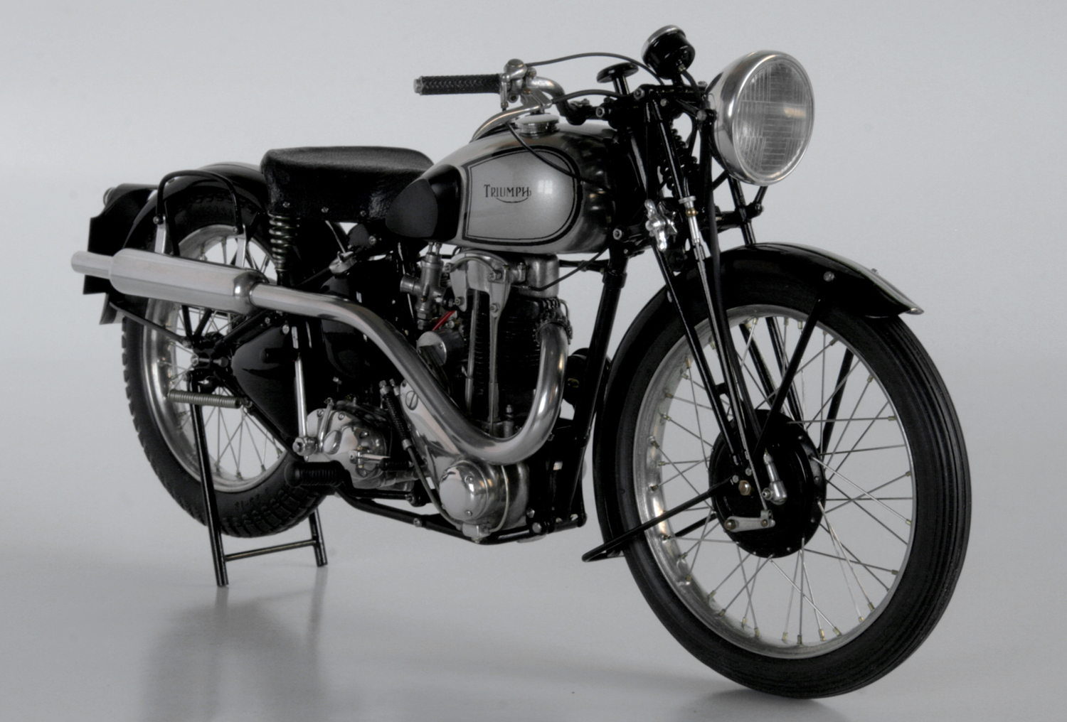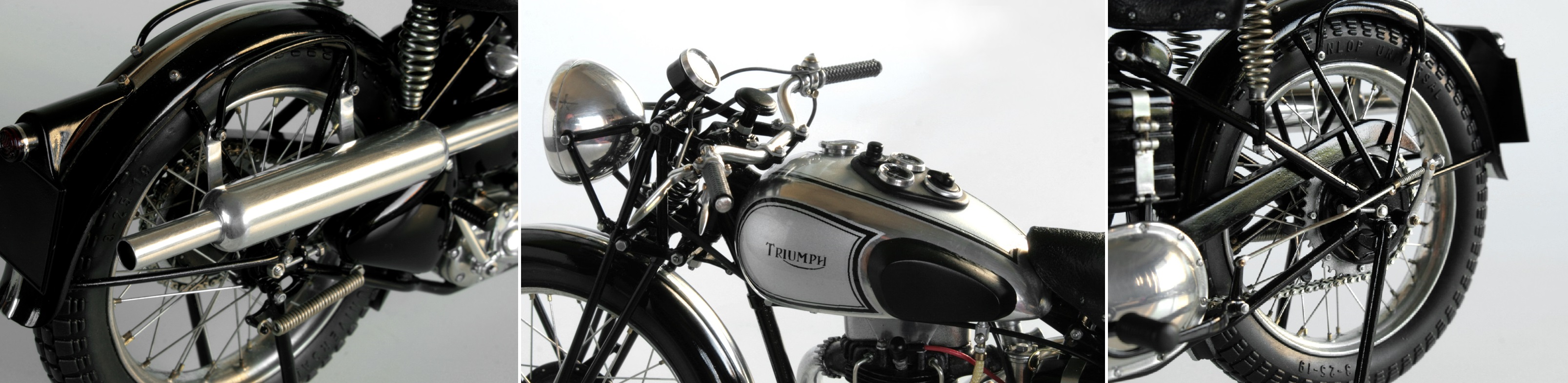 ところが1937年のSpeed Twinのオリジナルとしているいくつかの写真では、ほとんど同じ形状をしており、その後のTiger100までほぼ同じ形状が使われているらしいと気が付いたので、再度作り直した。ステンレスが固くて、曲がり方がちょっと鋭角になってしまったが、まぁ、こんなものか。