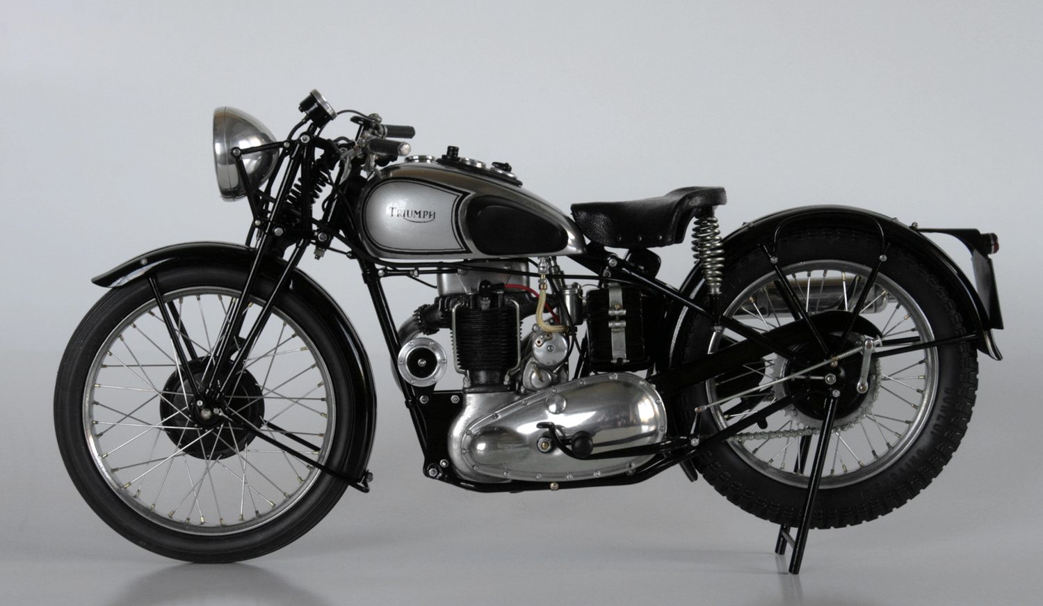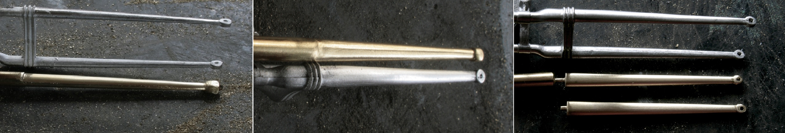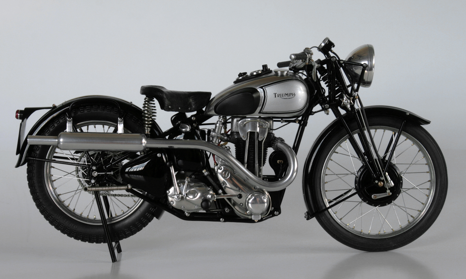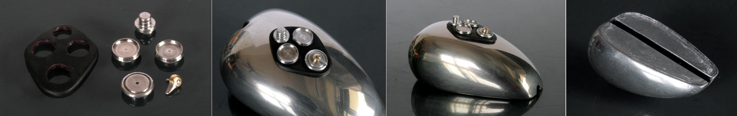 ところが1937年のSpeed Twinのオリジナルとしているいくつかの写真では、ほとんど同じ形状をしており、その後のTiger100までほぼ同じ形状が使われているらしいと気が付いたので、再度作り直した。ステンレスが固くて、曲がり方がちょっと鋭角になってしまったが、まぁ、こんなものか。
