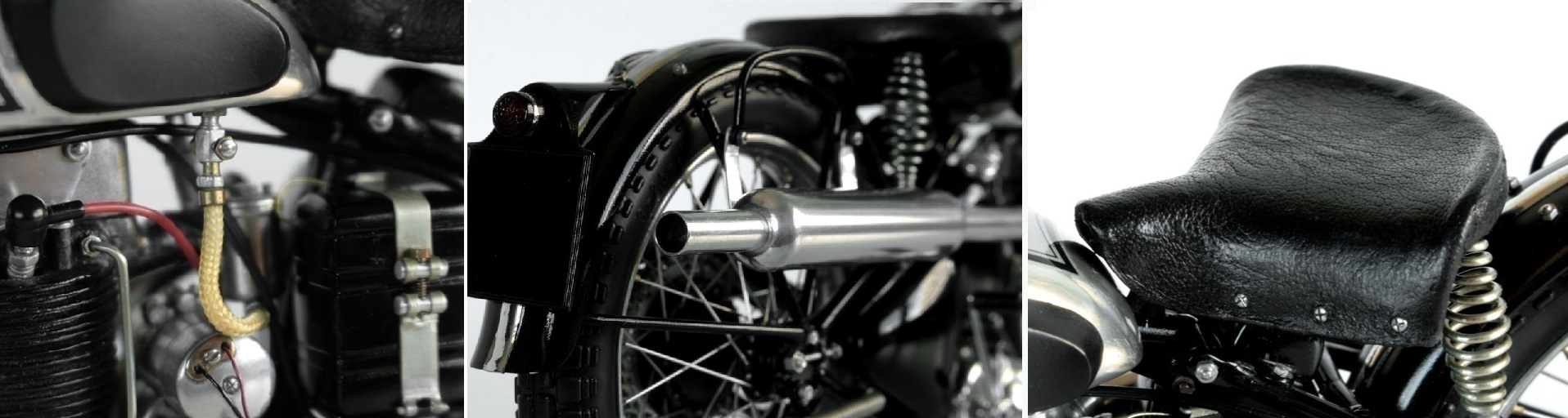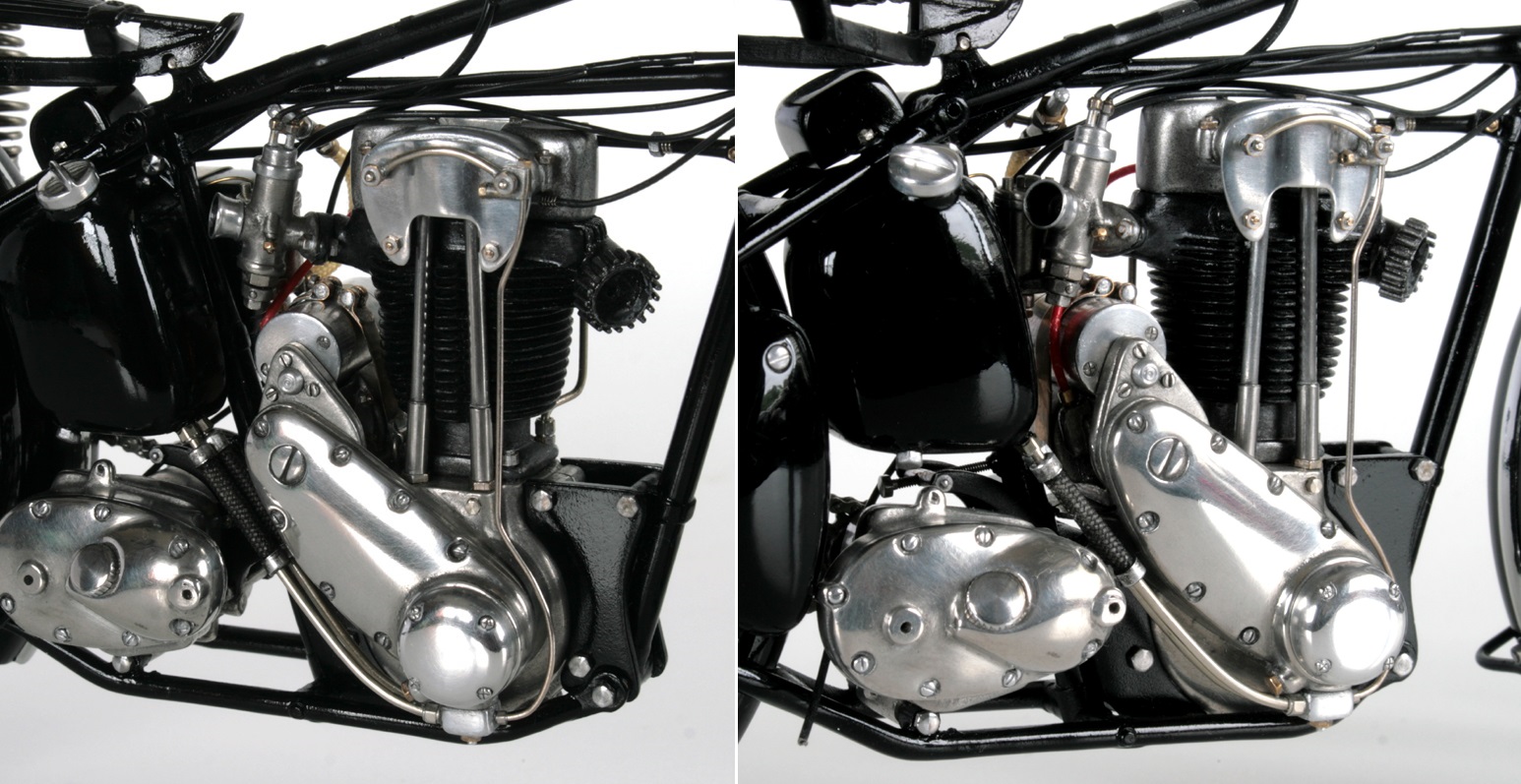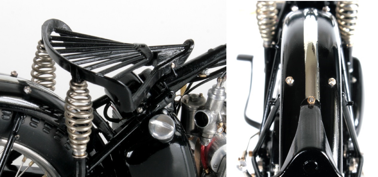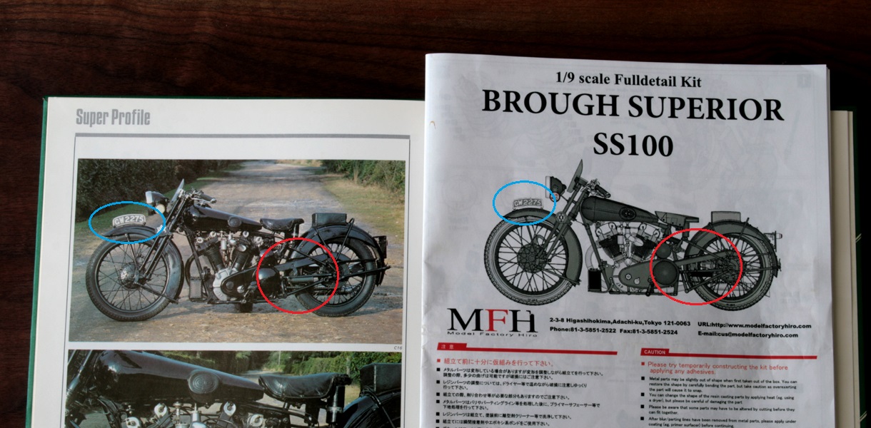 ちなみに MFH のSS100 右2本出しマフラーのモデルは、ナンバーがGW2275 なので1932年 A.ロレンスのモデルと思われるが、このモデルだとタンクは黒色。でも、メタルタンク仕上げの模型としている人が多いようです。