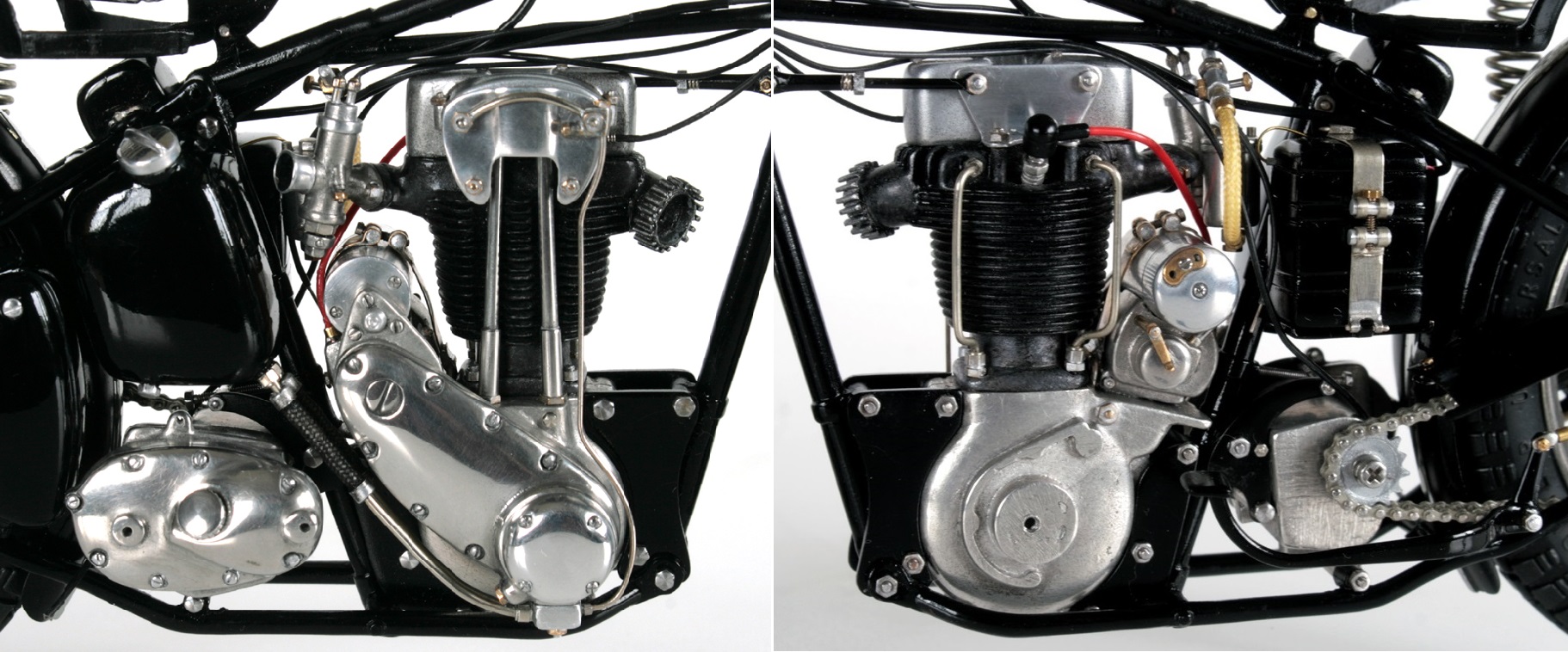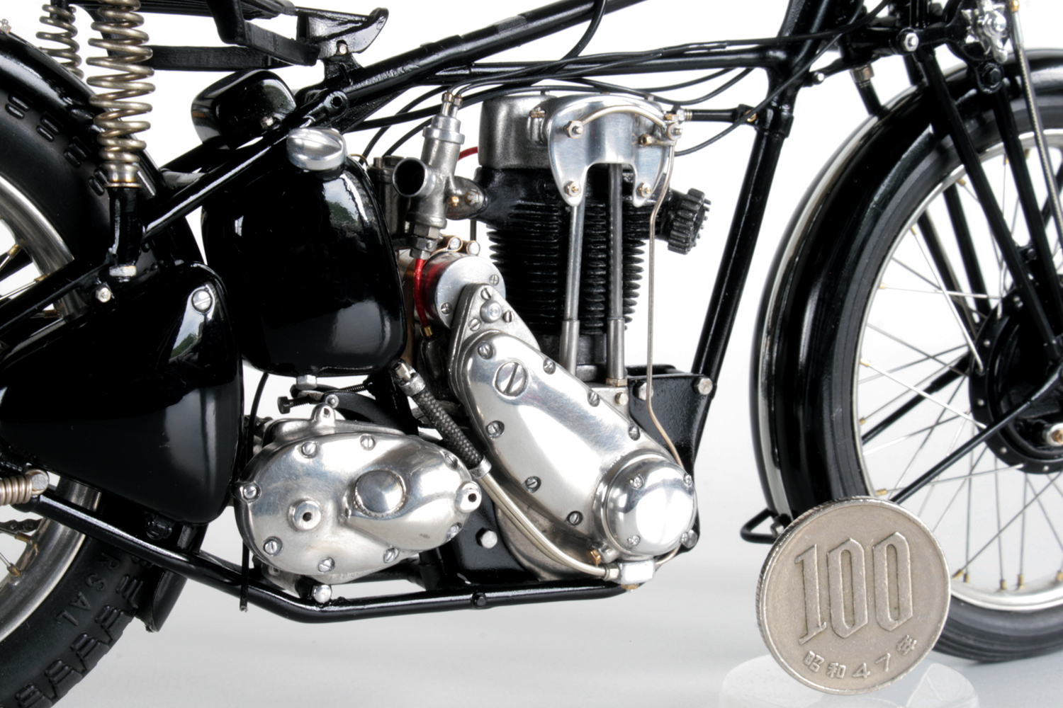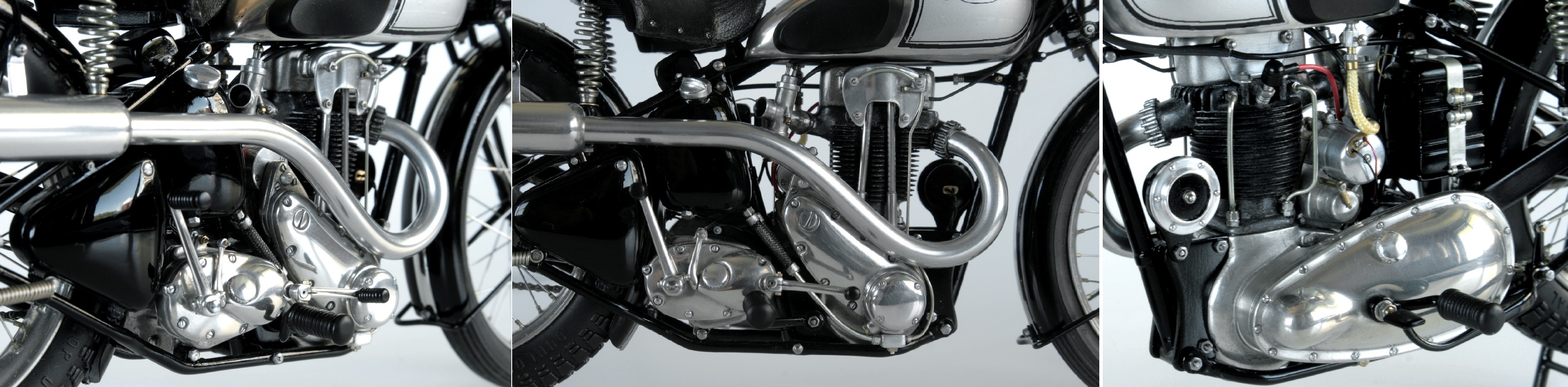 ちなみに MFH のSS100 右2本出しマフラーのモデルは、ナンバーがGW2275 なので1932年 A.ロレンスのモデルと思われるが、このモデルだとタンクは黒色。でも、メタルタンク仕上げの模型としている人が多いようです。