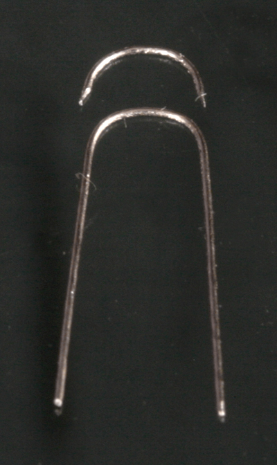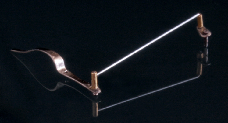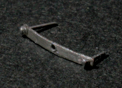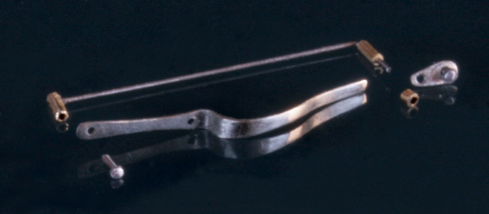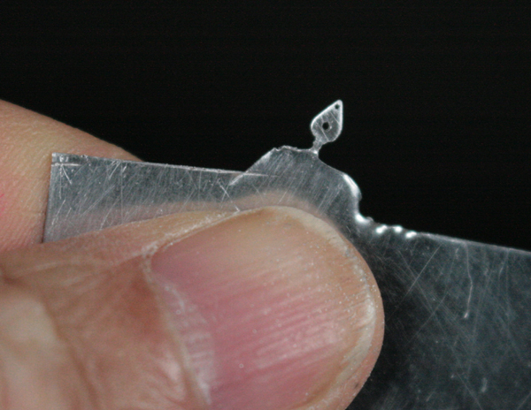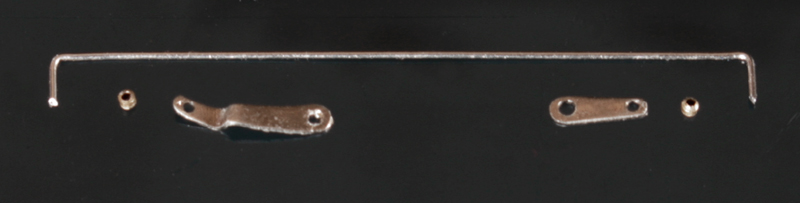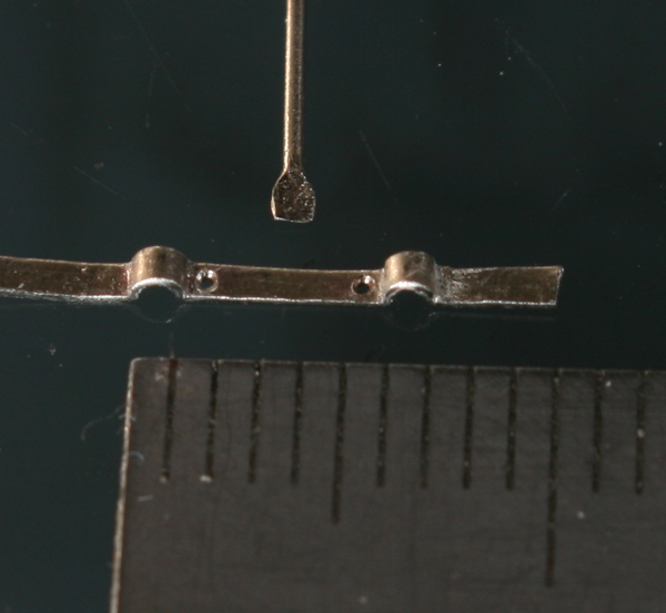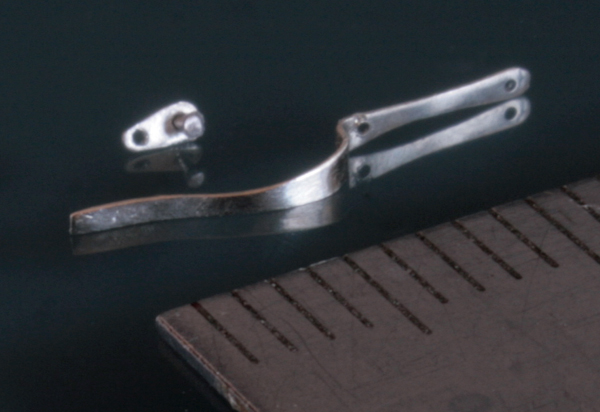 次にリアブレーキペダルとリアをつなぐロッドを作る。0.2mm厚の洋白板で作成。