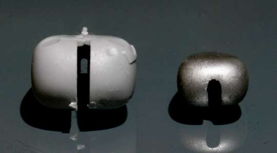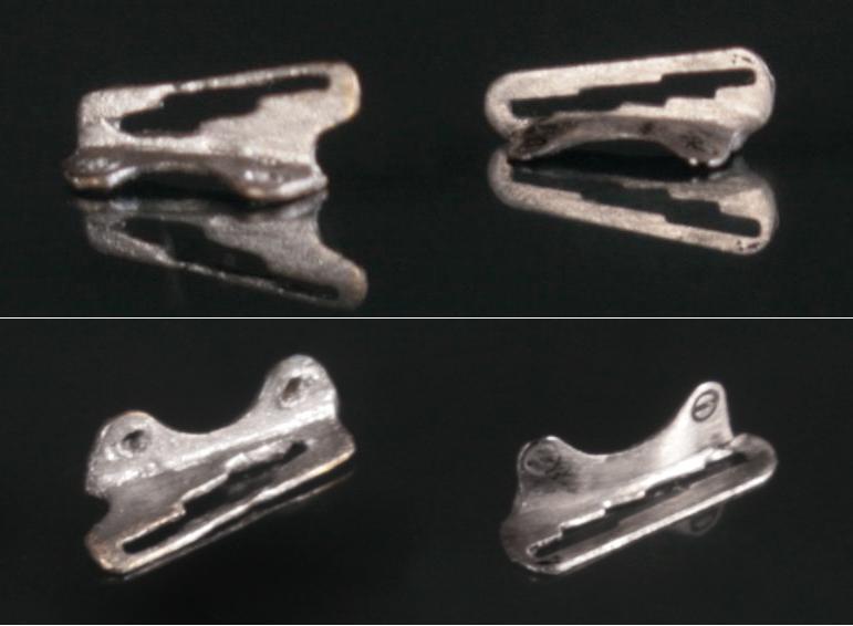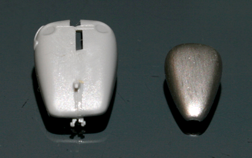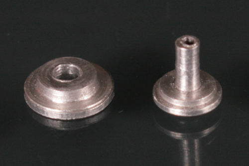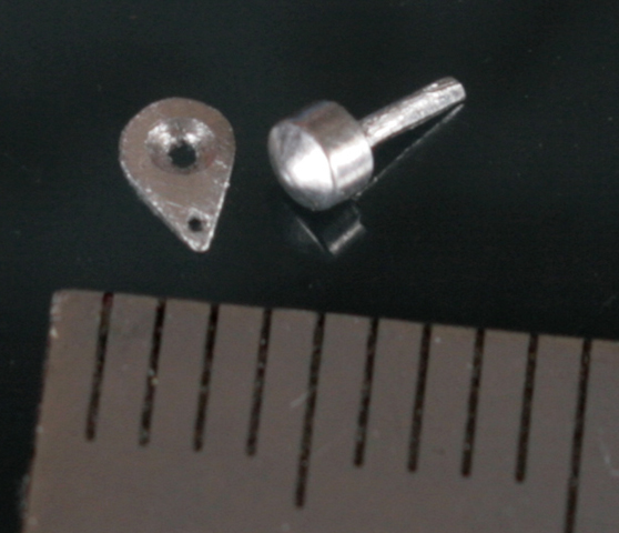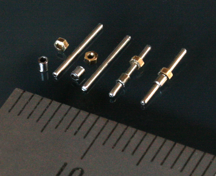小さな部品でもハンダ付けできそうなので、Swash Designのステンレスもハンダ付けしてみる。ネジ部分のモールドがちょっと潰れたが(キットの方は穴を開けた)なんとかできた。【写真左がキットのもの。ハンダメッキになっている】