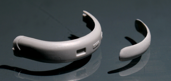 リアフェンダーもキットのものは幅が広く、角ばり過ぎなので、短くカットしてから整形。