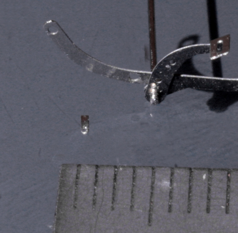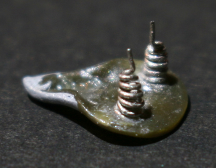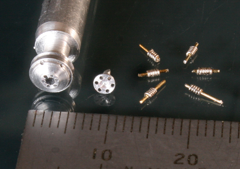 クラッチの直径は5mmほど。そこに6本のバネと支えのステーを作る。バネは最初0.25mmステンレス線で作ってみたがそれでも太い。結局,0.1mm洋白線で作り直すが,カメラの解像度が悪いのか写真にもちゃんと映らないくらい小さい。メジャーの線が太く感じる。1mmは一体どれくらいが本当に1mmなんだろう?って思ってしまう…
