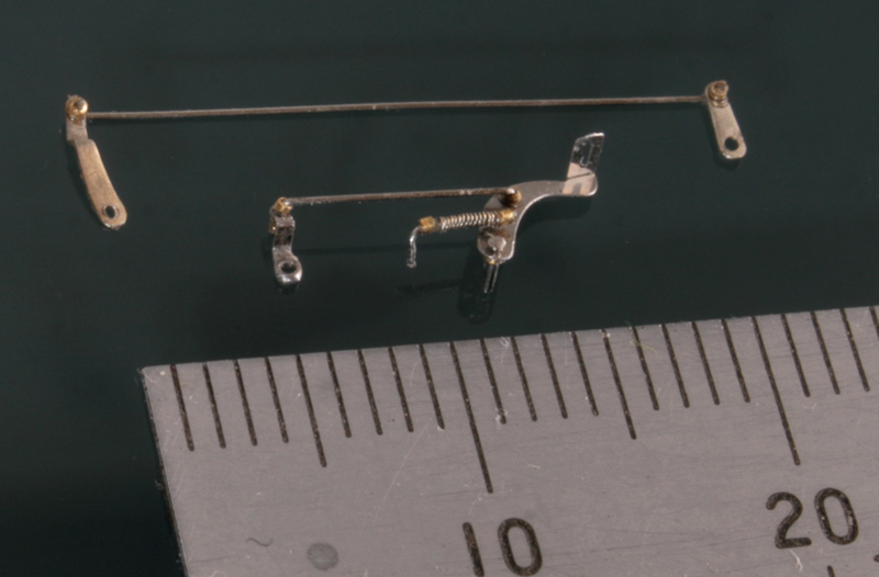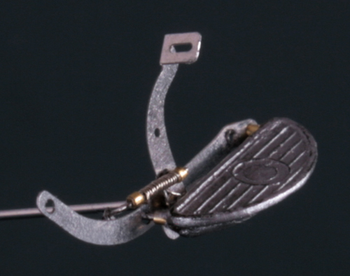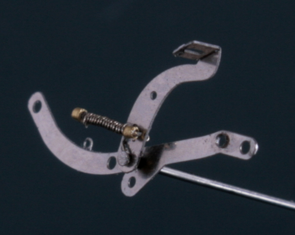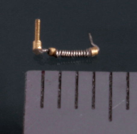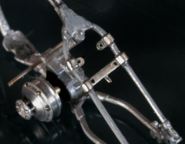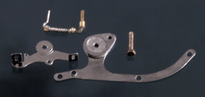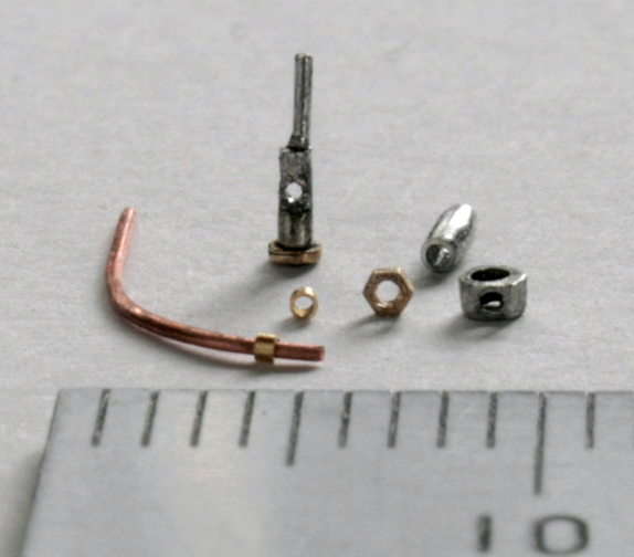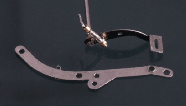 クラッチペダルは、六角ボルト留めできるように加工し、さらに0.1mm洋白線と0.3mmの真鍮パイプでバネを作る。バネは写真で見るまでよれていたことが分からないくらい小さい。