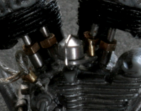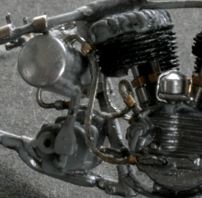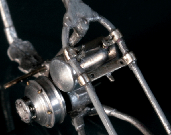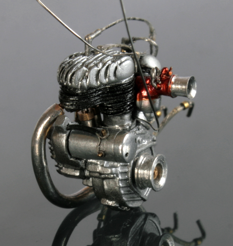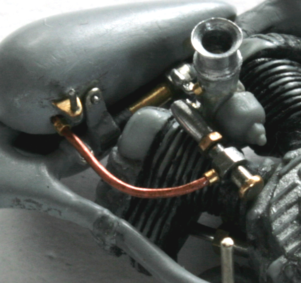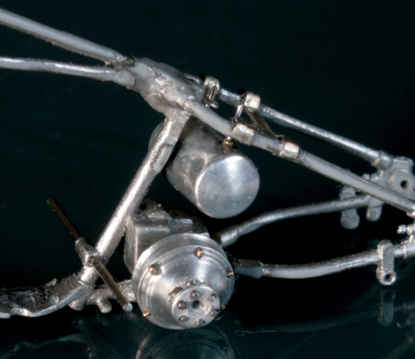 ガソリンパイプは、0.4mmエナメル線。それにアルミ・真鍮・洋白パイプを組み合わせて作成。