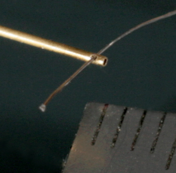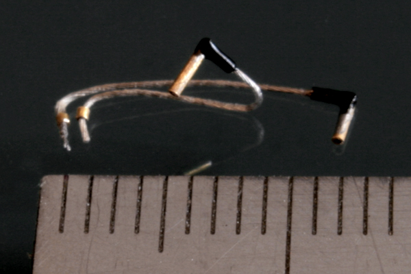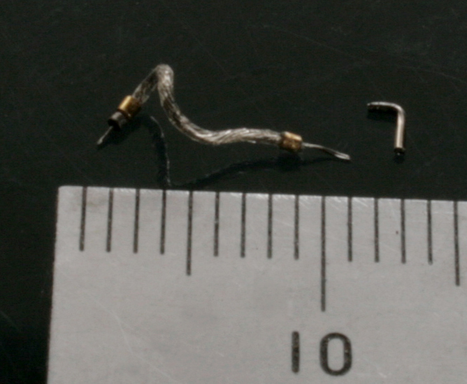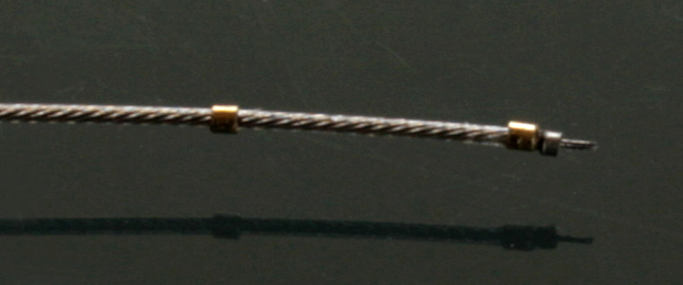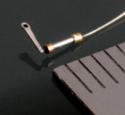 プラグコードは帆船用の0.2mmのメッシュワイヤーを使用。それに真鍮パイプをL字に半田付け。