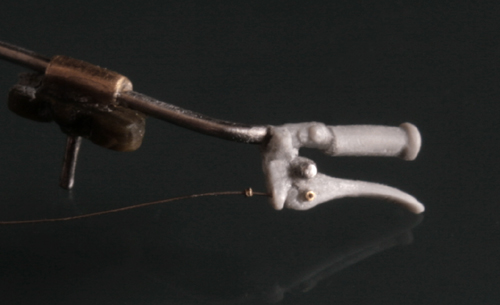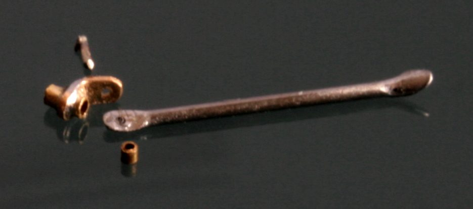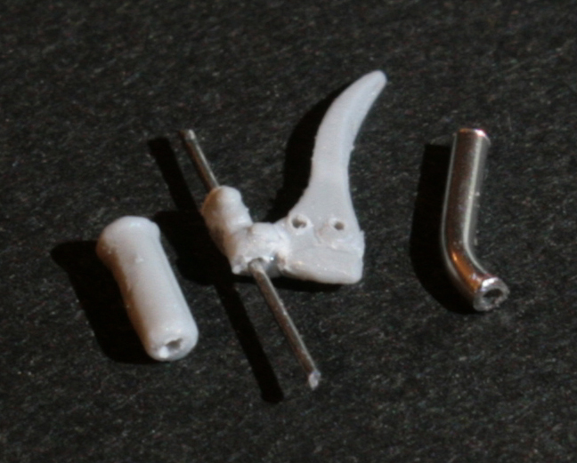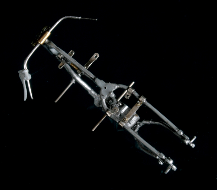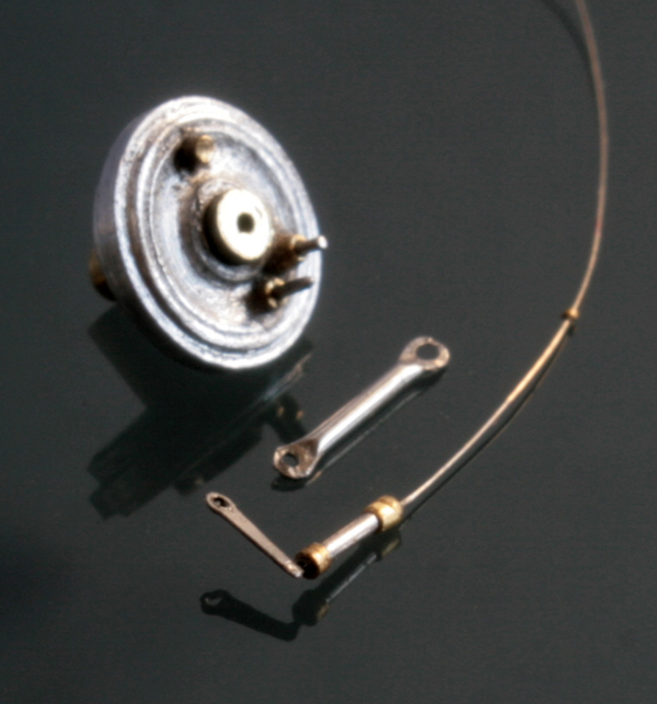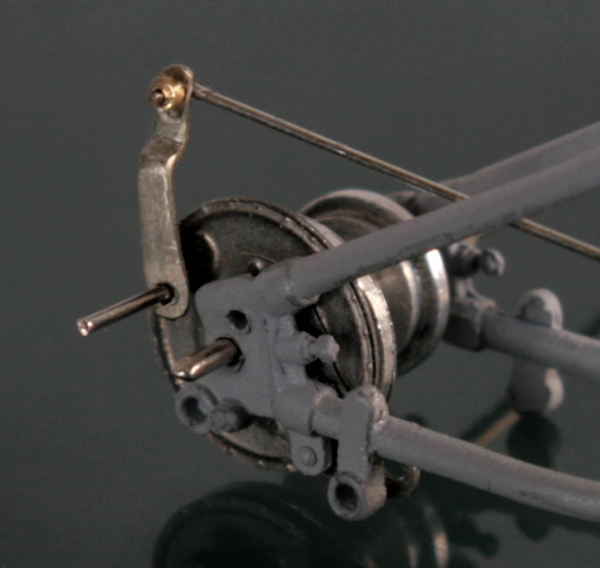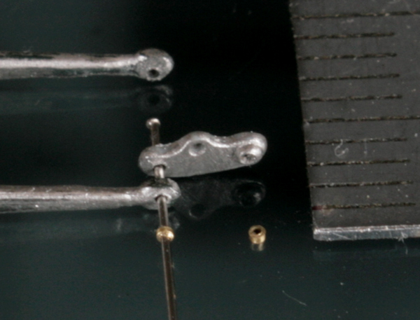 ギアチェンジレバーは Swash Design のエッチングを使用する予定だったが、下部の長さが足らないのと、途中で太くなったり婉曲なカーヴをえがいているため、0.15mm厚の洋白板で自作。ロッドは0.2mmステンレス線。これを0.5mmの真鍮パイプと組み合わせて、志賀昆虫の虫ピンNo.00をネジに見立ててとめる。段々0.1mm~0.3mmが当たり前の世界になってきた。