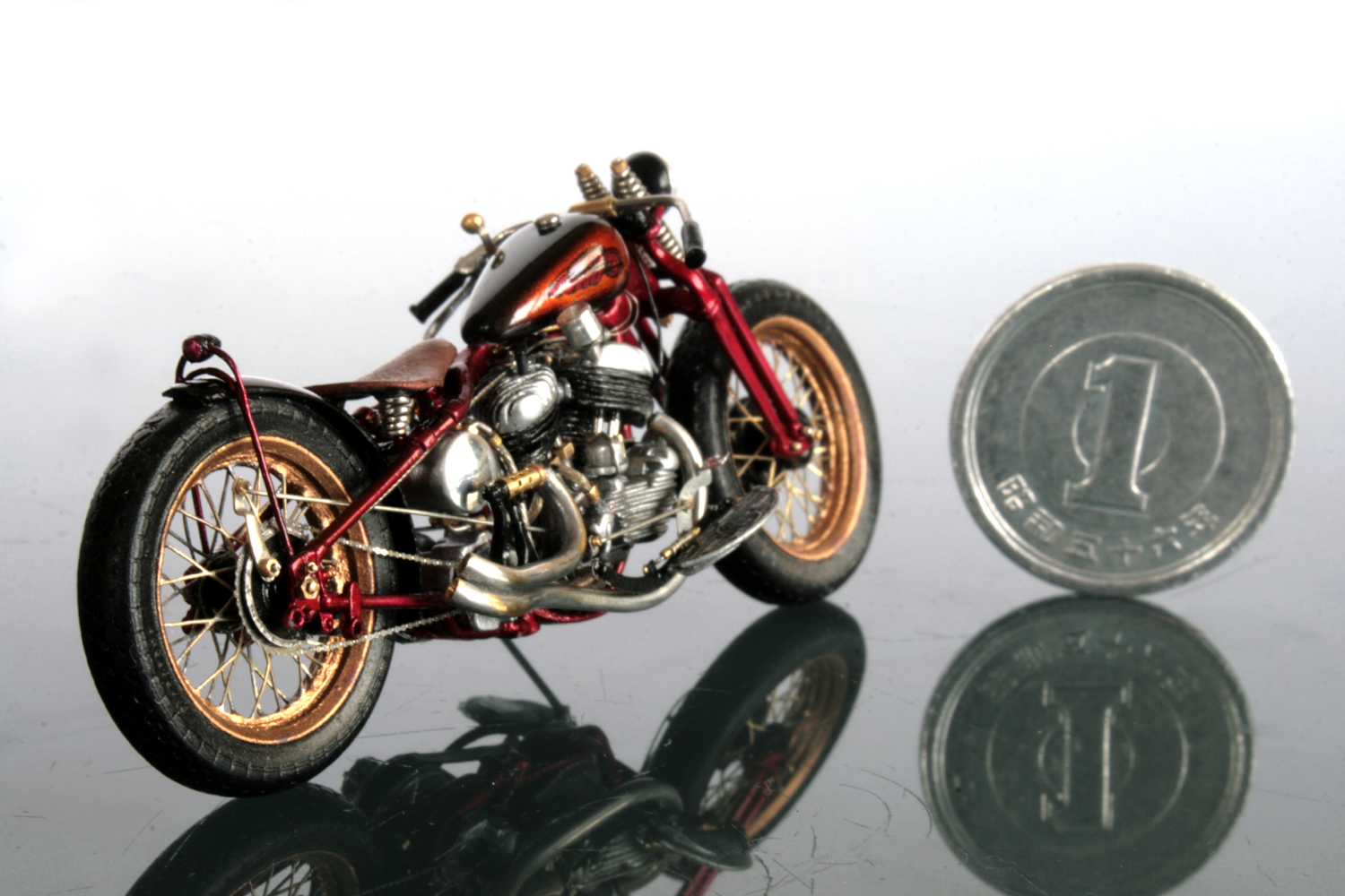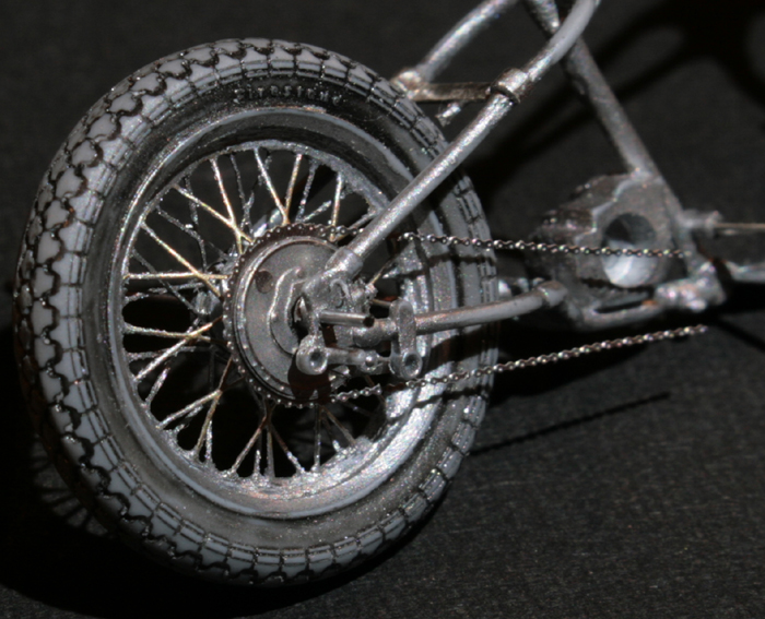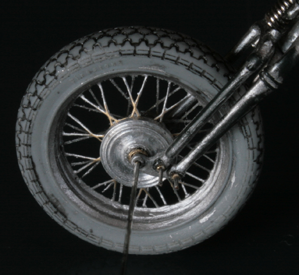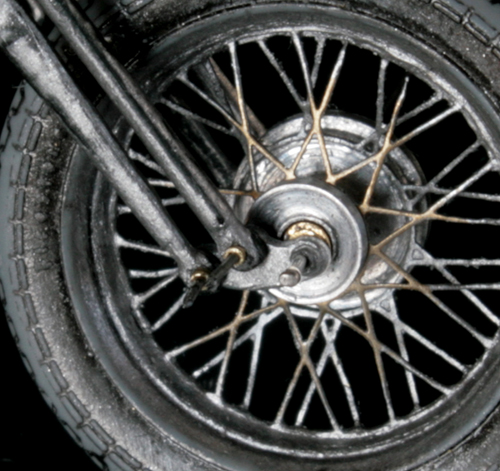 スポークとリムの接合部分が綺麗ではないので工夫が必要か… また、前タイヤのスポークが 1/9のスポークの張り方と違ってしまっているので印象が随分と違う… 結局、エッチングではなくスポークの張り直し? う~ん…大変そう。