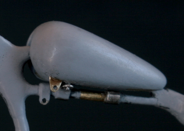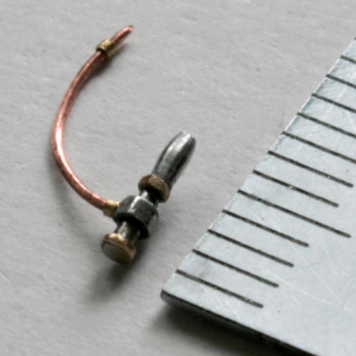 オイルタンク側は,0.3mm洋白線だけではなく,0.5mm真鍮パイプで取り付けネジ部分をつける。