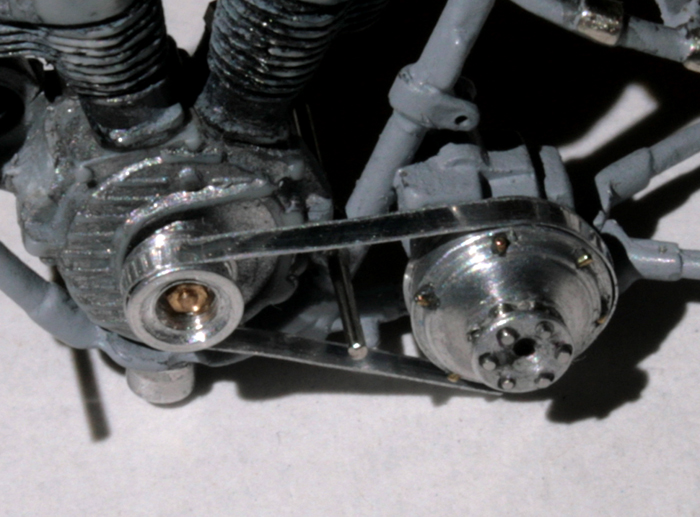 プライマリーベルトは0.1mm厚のアルミ板を1mm幅の帯にした。塗装してゴムベルトに見せないとね。