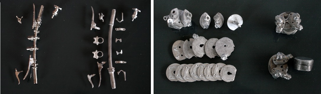 部品構成で驚くほど違うのが、ハンドルとシリンダー。RAEのハンドルはメッキされているが、ほぼ一体成形。BIg6は、レバー類を全て実車通りに取り付ける仕様になっている。だが、ハンドルバーが太すぎる??